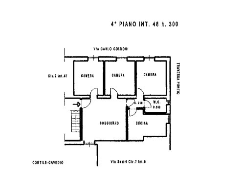 In Via Carlo Goldoni, comoda a mezzi e servizi, proponiamo appartamento ordinato di mq 113 posto al quarto piano senza ascensore, composto da soggiorno d'ingresso con ripostiglio, cucina, 3 camere e bagno. L'appartamento dispone di riscaldamento autonomo, porta blindata e finestre in alluminio con vetrocamera.